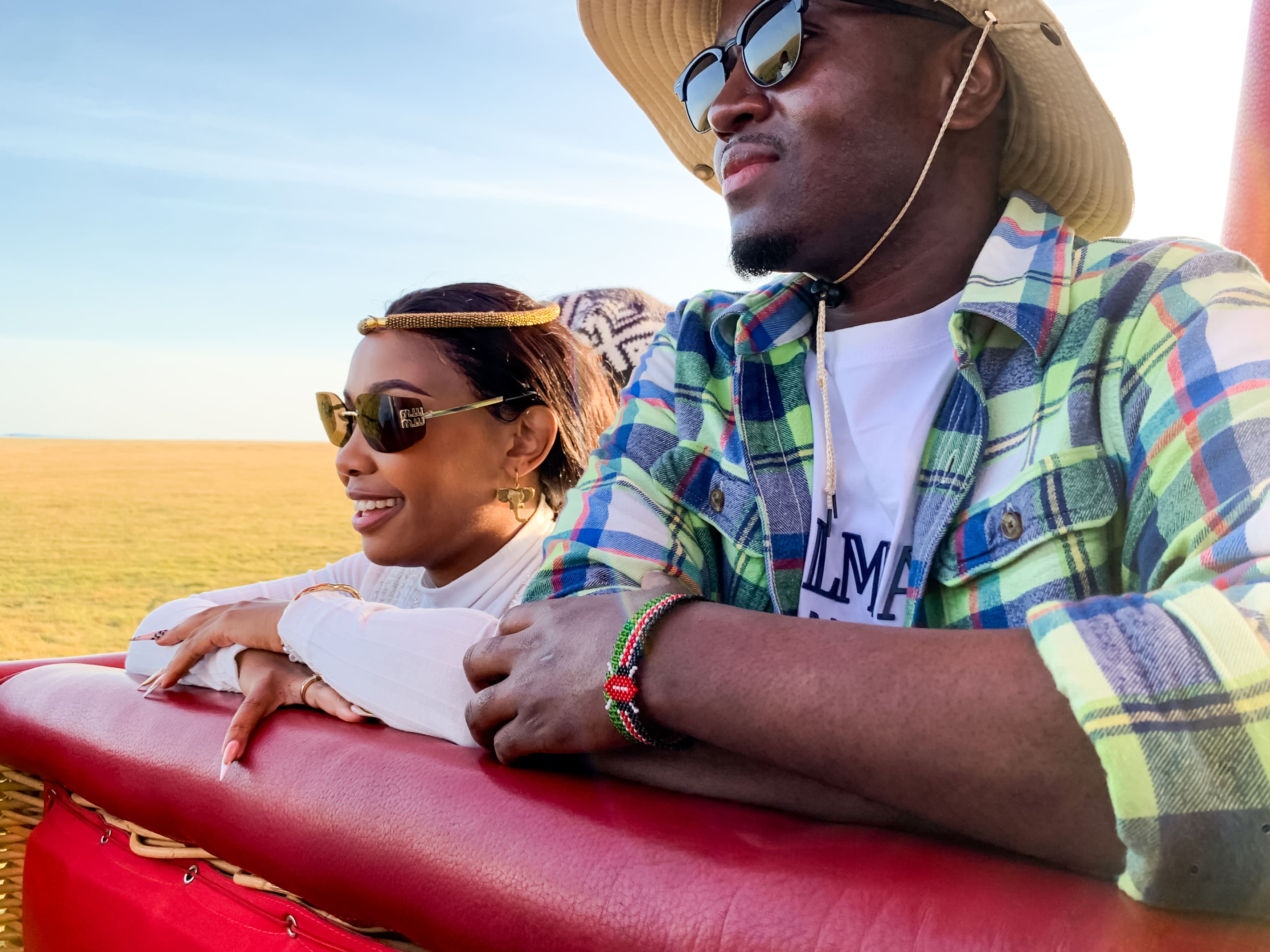 • Floating effortlessly in a hot air balloon over the Masai Mara Game reserve.